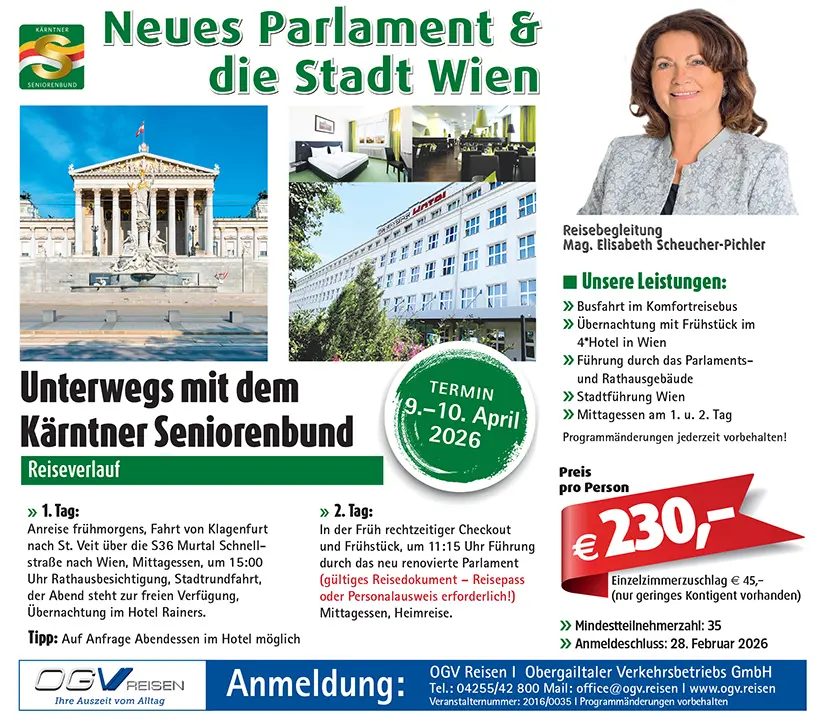 Unterwegs mit dem Seniorenbund – Neues Parlament und die Stadt Wien
